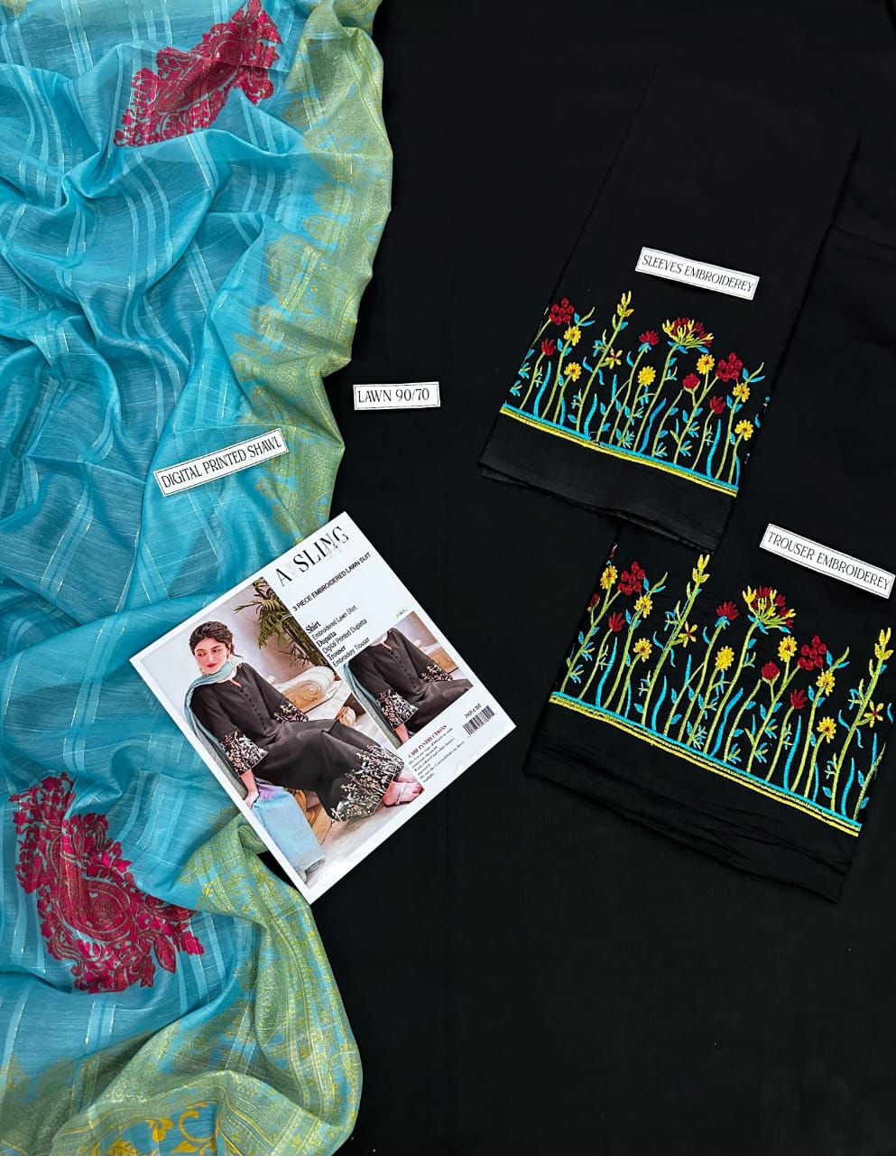 π Style: Unstitched 3-Piece Embroidered Lawn Suit