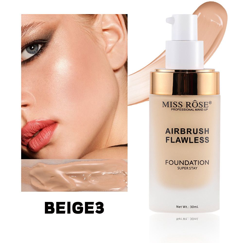 Achieve a smooth, poreless, and naturally radiant look with the Miss Rose AirBrush Flawless Foundation, designed to give you a professional airbrushed finish with zero effort. Its lightweight, super-stay formula blends seamlessly into the skin, offering full coverage while keeping your complexion breathable and shine-free all day. Available in a wide range of shades including Natural, Fair, Ivory 6, Beige 1, Beige 2, Beige 3, and Beige 4, this foundation suits every skin tone with ease.